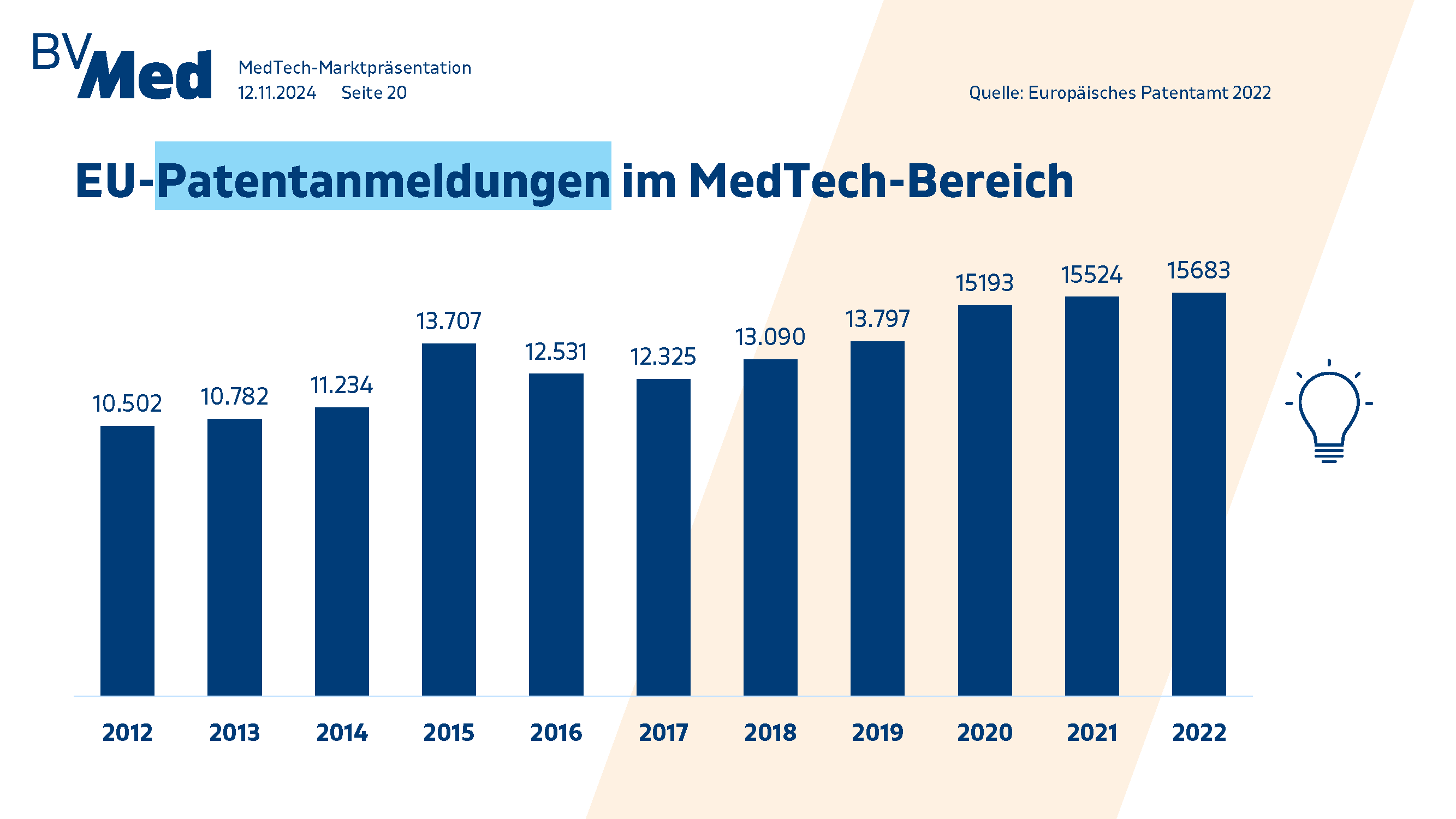 Der BVMed vertritt als Wirtschaftsverband rund 230 Hersteller und Zulieferer der Medizintechnik-Branche sowie Hilfsmittel-Leistungserbringer und Homecare-Versorger. Die Medizinprodukteindustrie beschäftigt in Deutschland über 235.000 Menschen und investiert rund 9 Prozent ihres Umsatzes in Forschung und Entwicklung. Der Gesamtumsatz der Branche liegt bei über 34 Milliarden Euro, die Exportquote bei 66 Prozent. Dabei sind 93 Prozent der MedTech-Unternehmen KMUs. Der BVMed ist die Stimme der deutschen MedTech-Industrie und vor allem des MedTech-Mittelstandes.