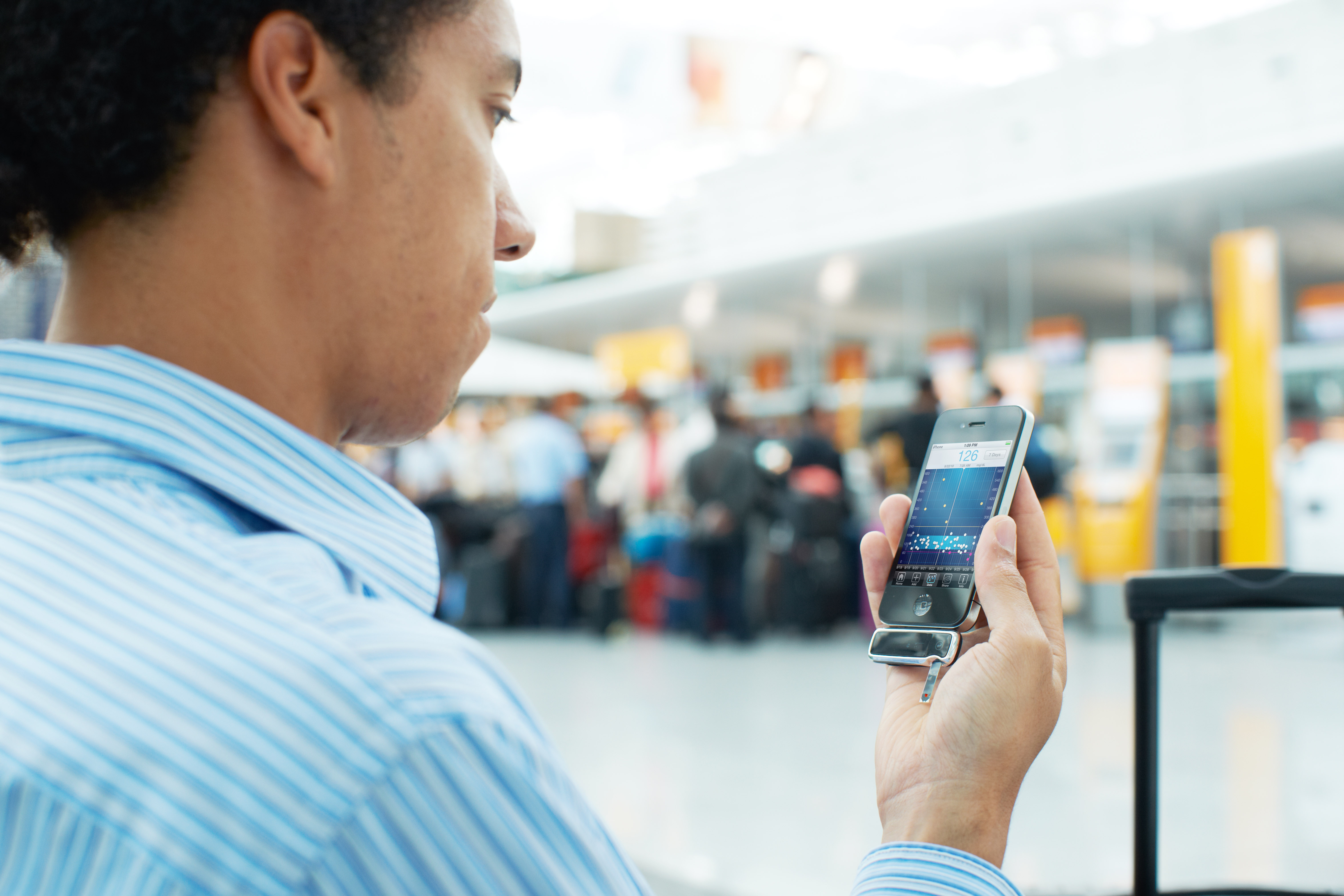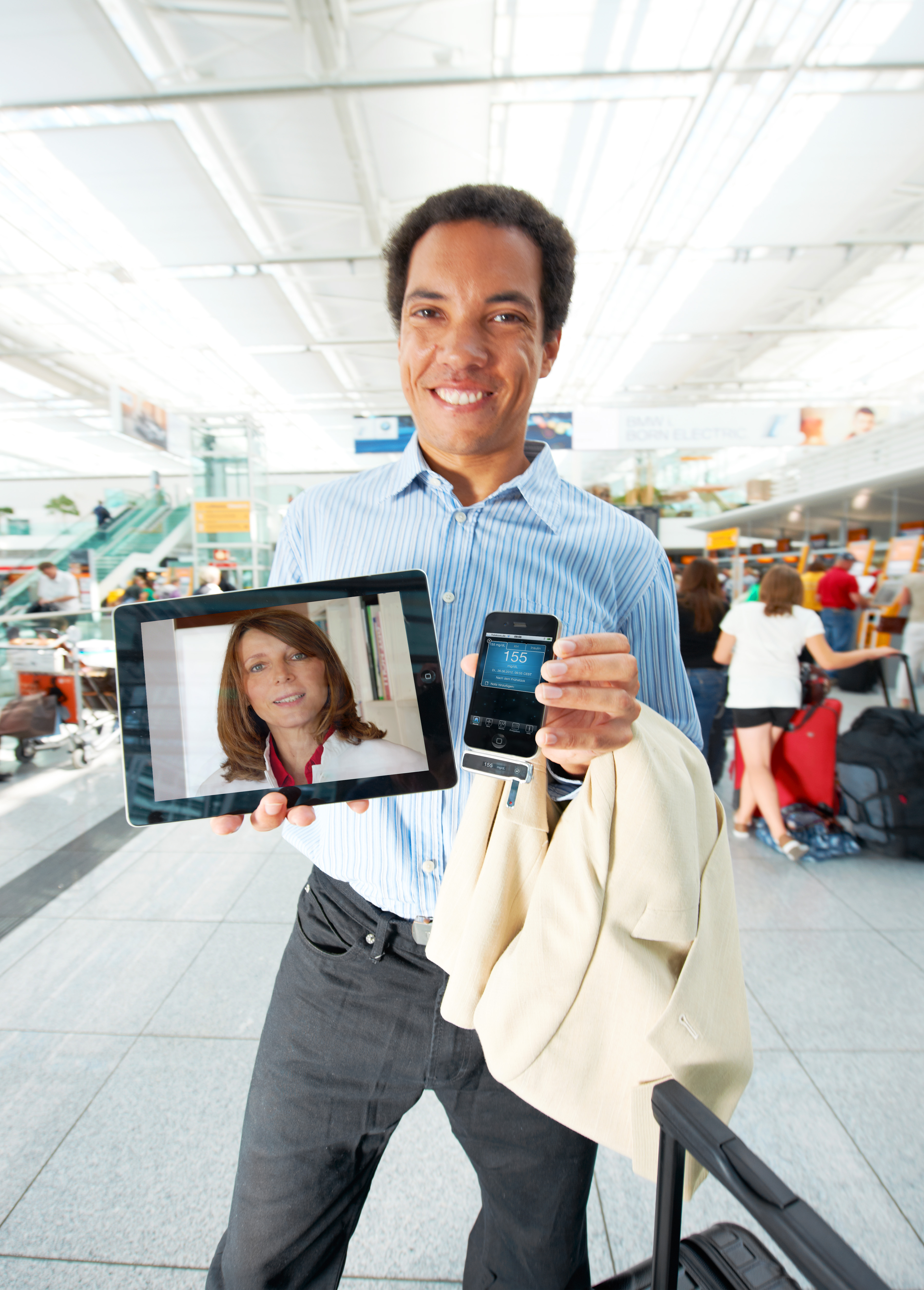 In Deutschland haben über 7 Millionen Menschen Diabetes. Je nach Schwere und Typ müssen Patienten mehrmals täglich ihren Blutzuckerspiegel messen. Moderne Möglichkeiten der Telemedizin erlauben es den Patienten, trotz dieser Belastung mobil zu bleiben und die Sicherheit zu erhöhen. Ein Beispiel: Mit Hilfe eines Adapters am iPhone kann der Blutzucker gemessen und an eine App übertragen werden. Die App verwaltet und bewertet den gemessenen Wert. Die aktuellen Daten können bei Bedarf direkt an den Arzt gesendet werden. Gemeinsam ist es dann möglich, besser fundierte Therapieentscheidungen zu treffen - praktisch in Echtzeit.