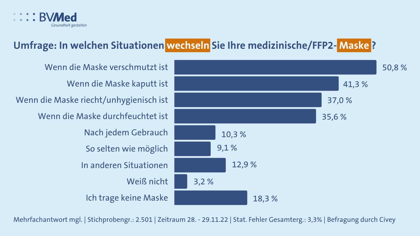 - COVID-19 Bevölkerungsumfrage | Nur 10 Prozent der Deutschen wechseln Masken nach jedem Gebrauch | BVMed: „Masken müssen korrekt angewendet werden“