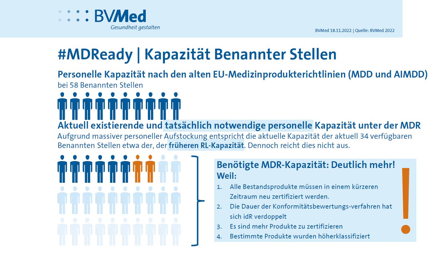 Der BVMed drängt im Vorfeld der EPSCO-Sitzung der EU-Gesundheitsminister:innen am 9. Dezember 2022 auf konkrete Verbesserungen der EU-Medizinprodukte-Verordnung (MDR). Hintergrund ist, dass aufgrund von Engpässen bei den Zertifizierungsstellen und dem erheblich gestiegenen bürokratischen Aufwand von 25.000 bis Mai 2024 benötigten Medizinprodukte-Zertifikaten bislang erst 2.000 MDR-Zertifikate ausgestellt sind. „Europa droht durch die MDR als Forschungs- und Produktionsstandort weit hinter die USA zurückzufallen, wenn jetzt nicht gehandelt wird“, befürchtet BVMed-Geschäftsführer Dr. Marc-Pierre Möll. Jüngstes Warnzeichen: Das Schweizer Parlament hat am 28. November 2022 beschlossen, künftig auch die FDA-Zulassung von Medizinprodukten anzuerkennen.