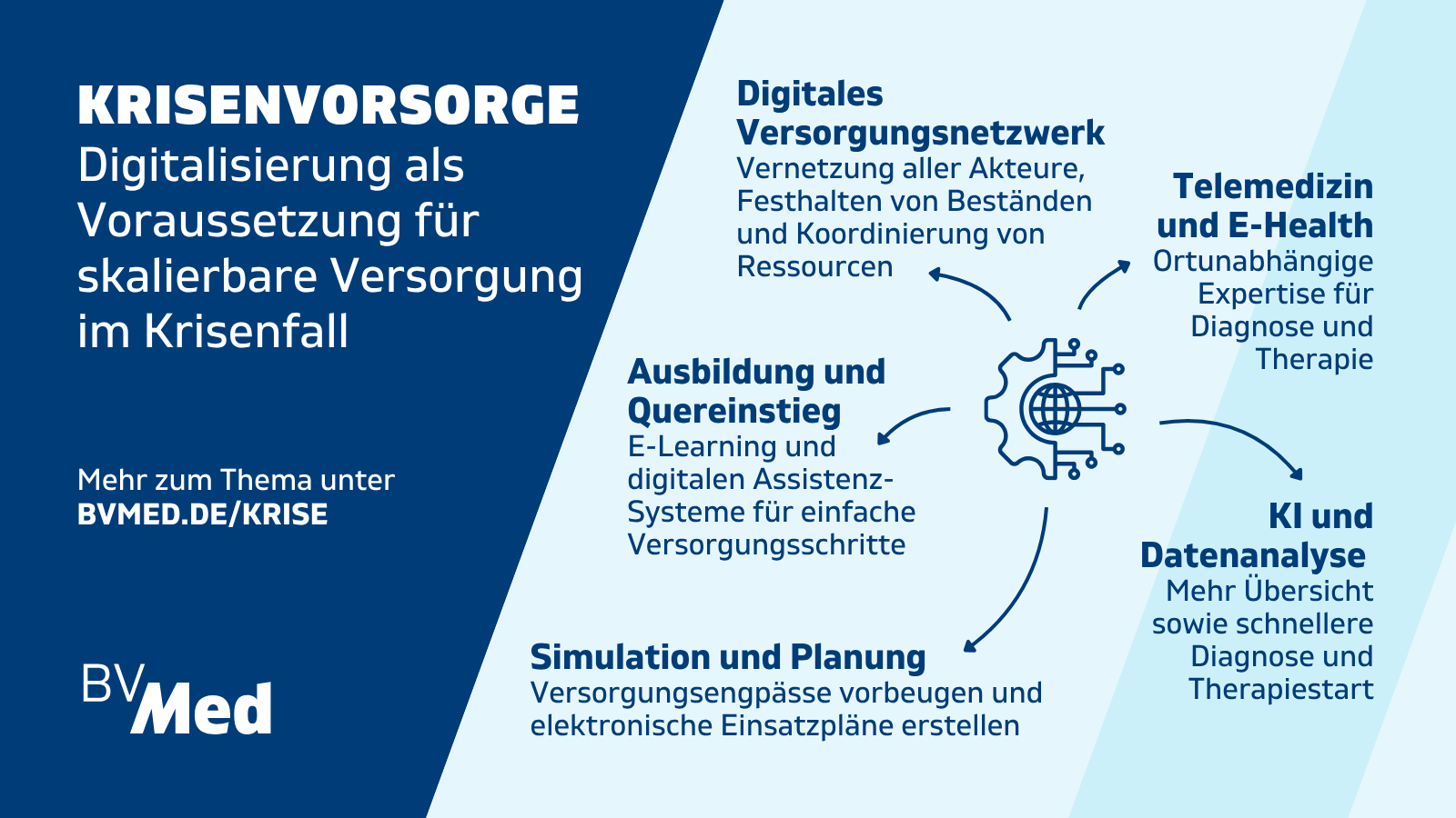 Positionspapier zu Krisenvorsorge und Zivilschutz auf. Die medizinische Versorgung hat dabei eine Schlüsselrolle im Krisenfall. Wir müssen jetzt die Strukturen schaffen, die in der Krise notwendig sind. Das Ziel muss der Aufbau eines resilienten, dual nutzbaren Systems medizinischer Versorgung sein, das sowohl im Alltag als auch im Krisenfall tragfähig ist. Dabei muss die Medizintechnik als integraler Bestandteil einbezogen werden.