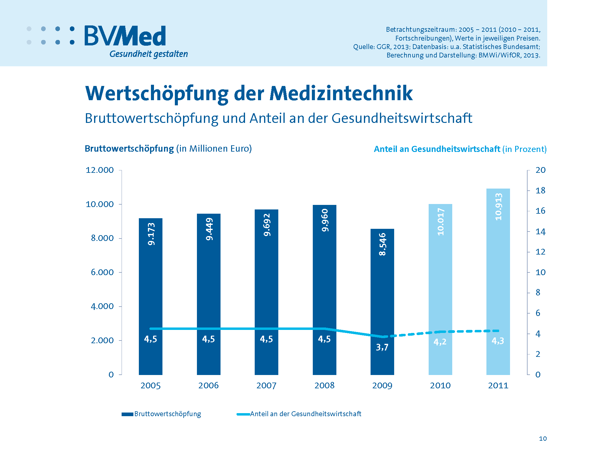 Die Unternehmen der Medizintechnologie sind nach wie vor sehr erfolgreich im Export. Das Wachstum liegt hier bei rund 6 Prozent. Die Entwicklung im inländischen Markt ist dagegen mit einem Umsatzwachstum von 4 Prozent leicht rückläufig.