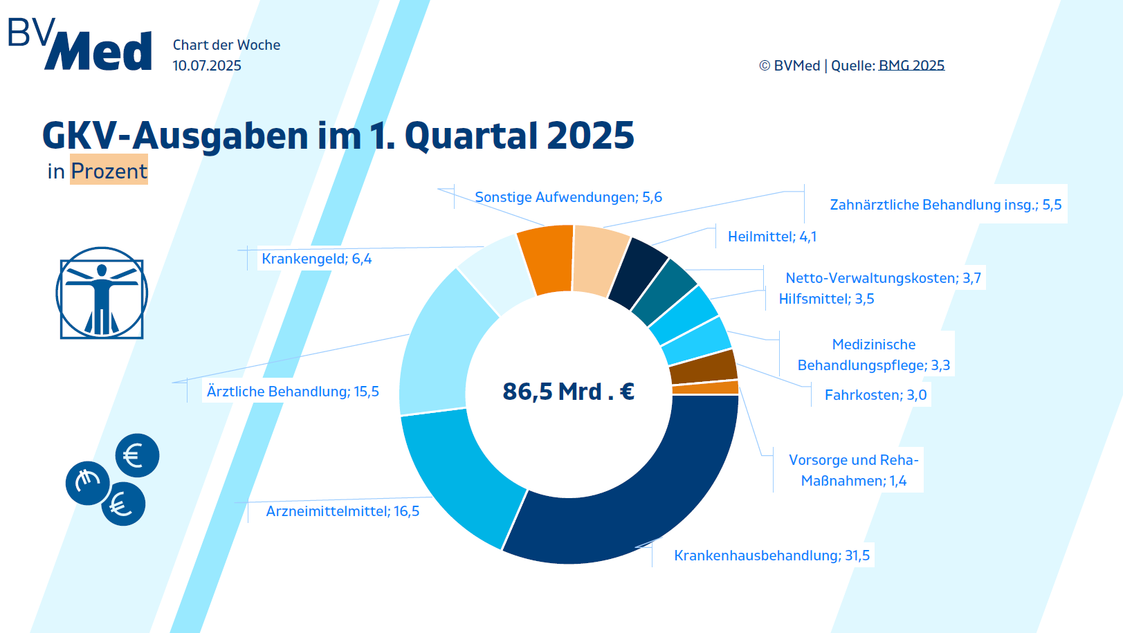 Im ersten Quartal hatte die gestzliche Krankenkasse Ausgaben von 86,5 Mrd. Euro.