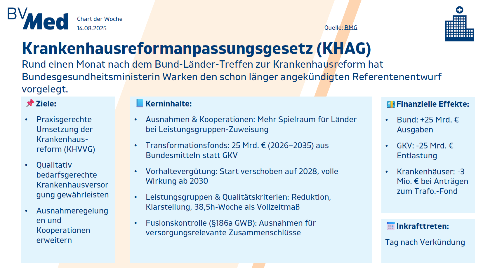 Mit dem Krankenhausreformanpassungsgesetz (KHAG) wird das BMG die Krankenhausreform der vorgänger Regierung anpassen.